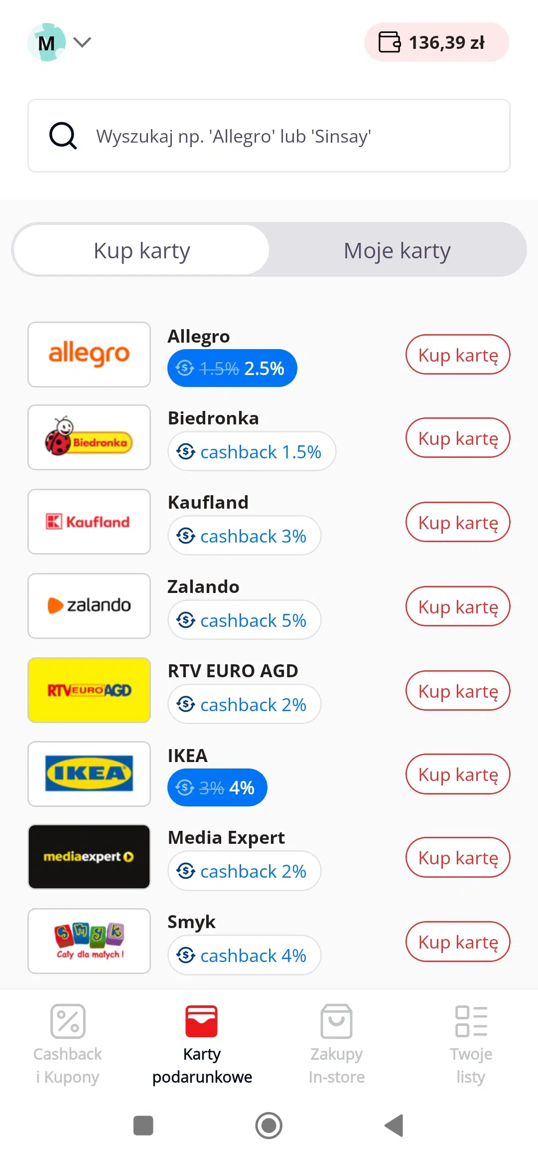 ⭐ Natychmiastowy cashback za zakup kart podarunkowych ⭐