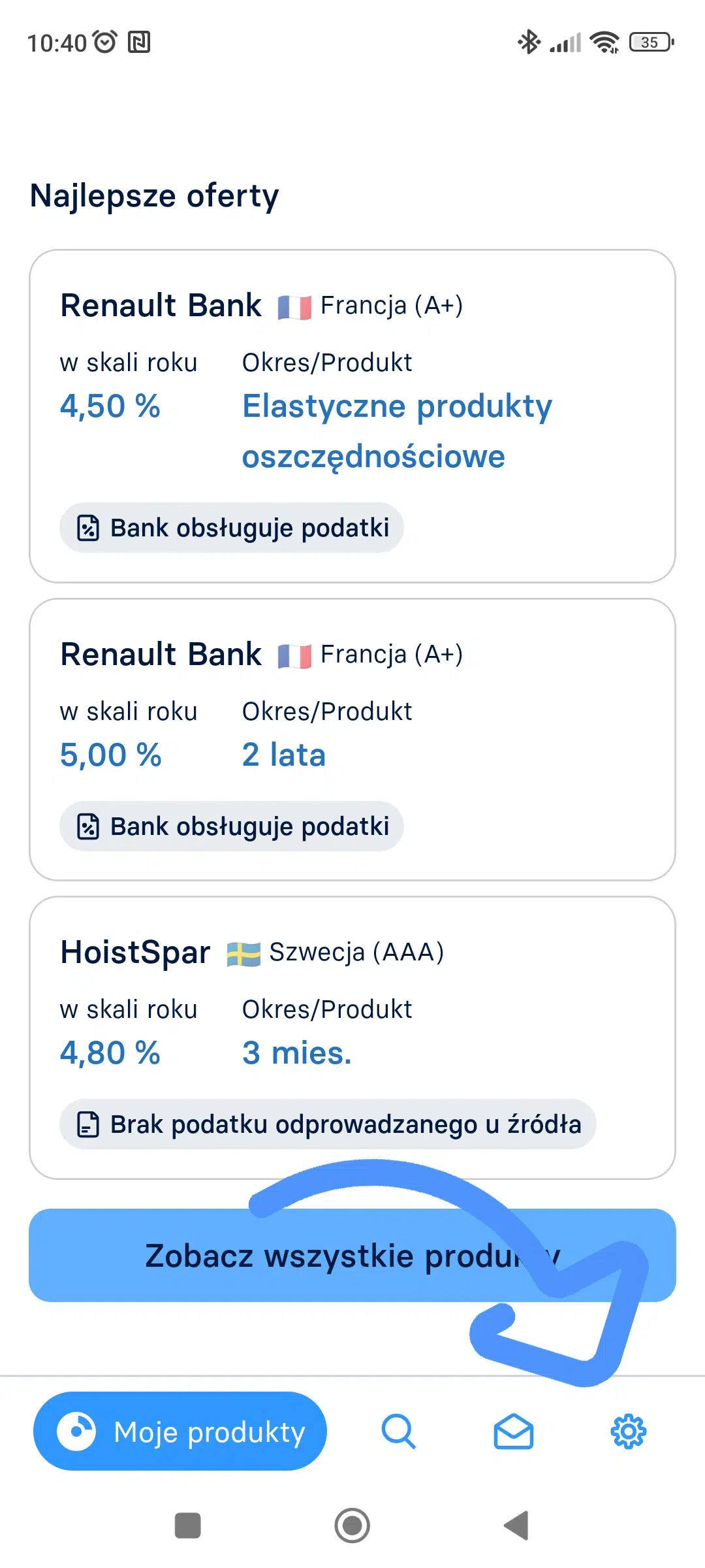 • Dostęp do lokat i kont oszczędnościowych w bankach z całej Europy